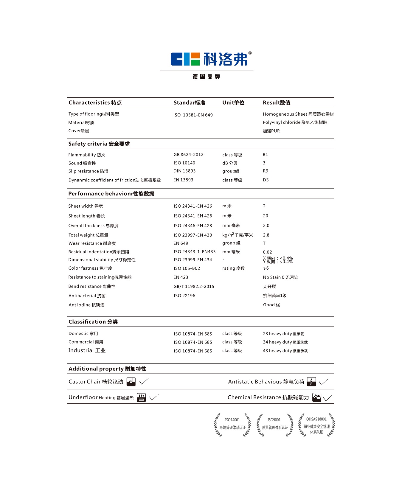 科潔系列無方向同質透心PVC地板